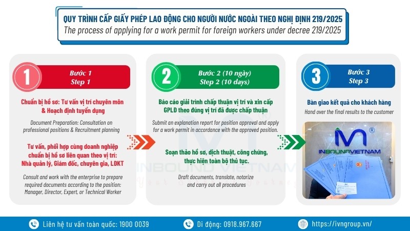Quy trình xin cấp Giấy phép lao động cho người nước ngoài tại Việt Nam thường gồm 2 bước chính: