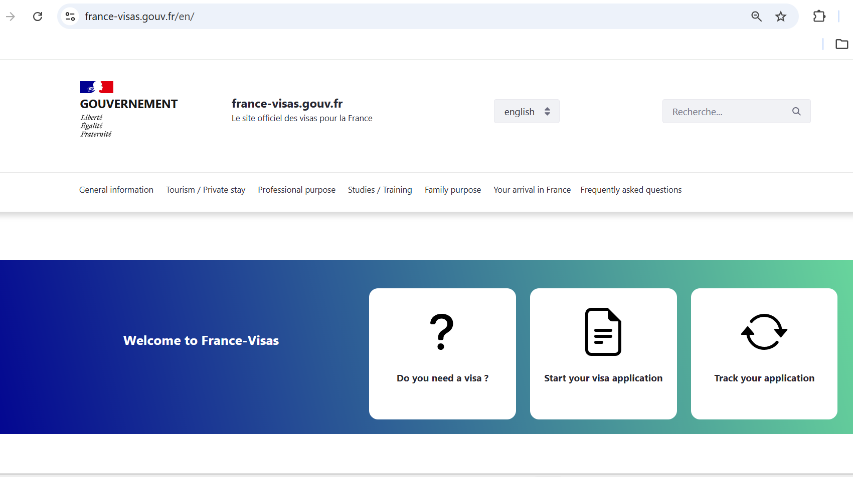 Truy cập vào link https://france-visas.gouv.fr/en/